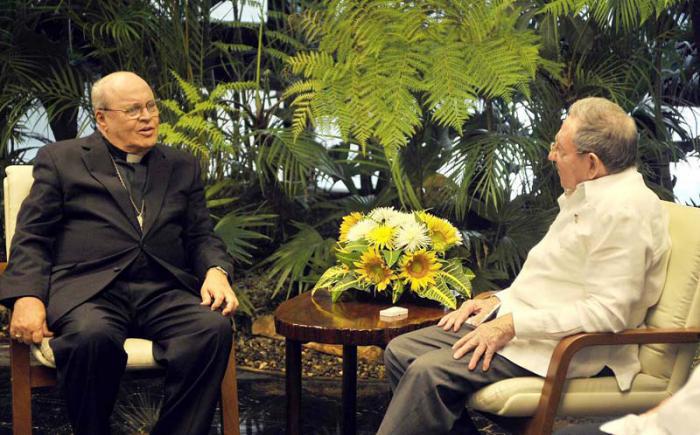 O presidente dos Conselhos de Estado e de Ministros, general-de-exército Raúl Castro Ruz, recebeu na tarde da segunda-feira, 17 de agosto, o cardeal Jaime Ortega Alamino, arcebispo de Havana.