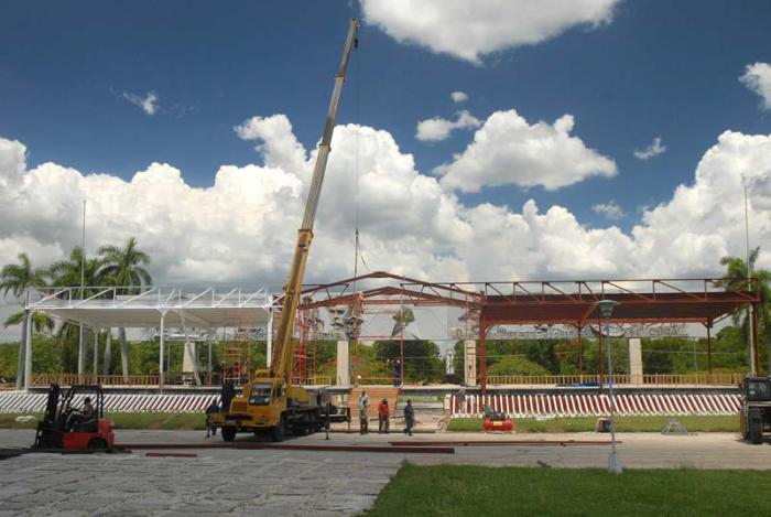 O correspondente do Granma percorreu as áreas da praça e verificou o andamento das obras, que devem ser concluídas, antes do final deste mês, a montagem das estruturas metálicas para abrir caminho ao trabalho de decoração e de outros tipos, de acordo com informações fornecidas pelo engenheiro Robiel Perez Gutierrez, diretor de produção da UEB Nicaro, que pertence à Empresa de Construção de Obras Industriais nº 9 de Holguín.