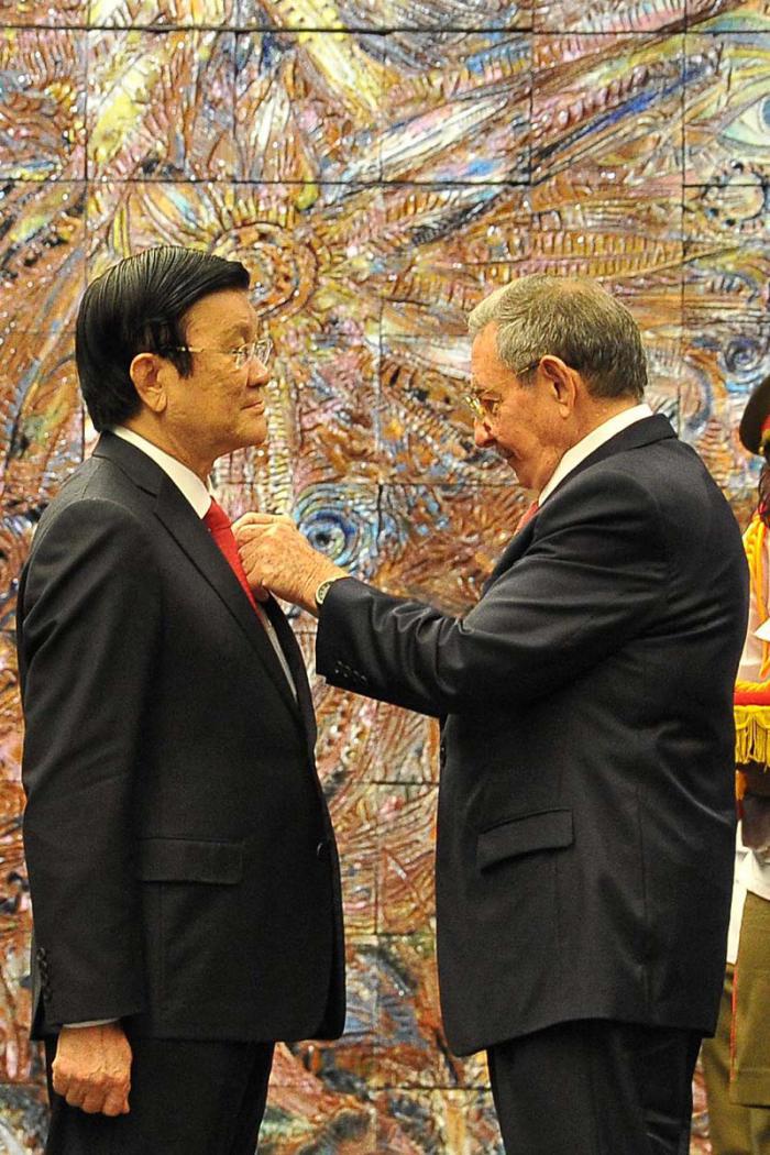 Ao concluir as conversações oficiais e após a assinatura de dois acordos governamentais, na presença das respectivas delegações, o presidente cubano condecorou o mandatário vietnamita com a Ordem Nacional “José Martí”, máxima condecoração que outorga a República de Cuba.