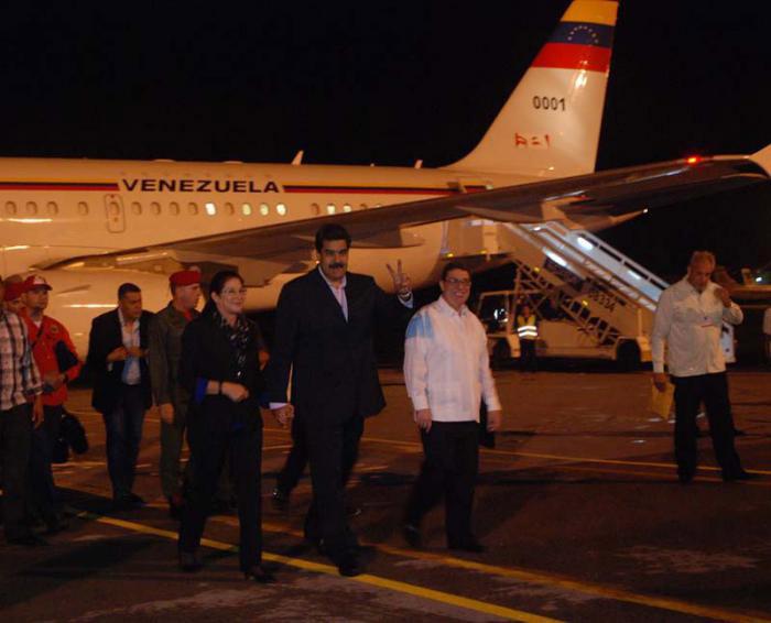 “Estou aquí por ele”, disse Maduro à chegada ao Aeroporto Internacional José Martí, onde foi recebido pelo chanceler cubano Bruno Rodríguez Parrilla e o embaixador.