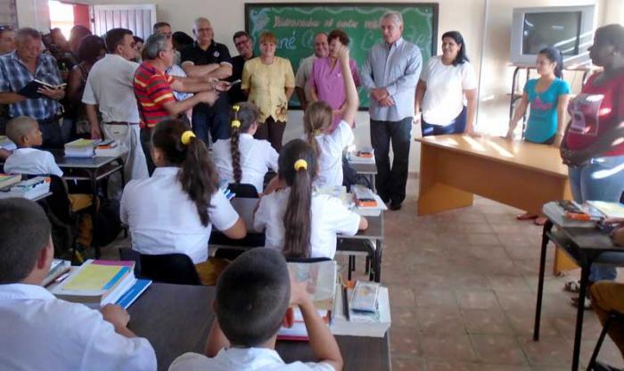 Acompanhado das principais autoridades da província e pela ministra da Educação, Ena Elsa Velázquez, o primeiro vice-presidente interessou-se também pela opinião dos estudantes sobre a nova escola e pela maneira em que anteriormente recebiam as aulas.