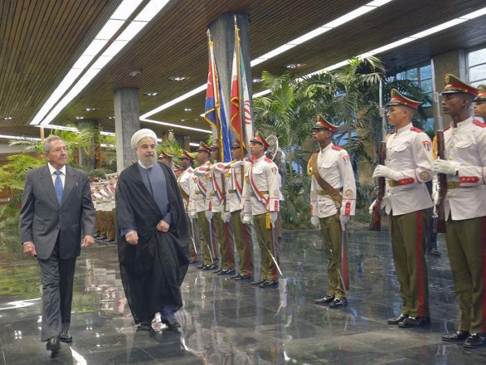 O presidente dos Conselhos de Estado e de Ministros, general-de-exército Raúl Castro Ruz, recebeu na tarde da segunda-feira, 19 de setembro, o Ex.mo sr. dr. Hassan Rouhani, presidente da República Islâmica do Irã, quem faz uma visita oficial a Cuba.