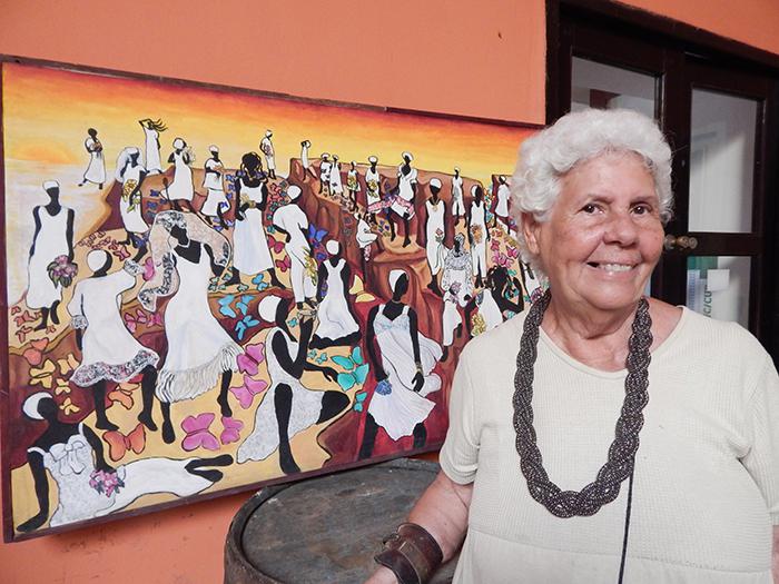 «Dedico-me à pintura naif, um tipo de método ingênuo e natural. Não requer de estudos acadêmicos e busca criar emoções no espectador. Recrio-me no tema da cultura haitiana e pinto mulheres em relação social com outras pessoas, expresso as diversas religiões, nas quais elas buscam sua fé», explica a também doutora em Pedagogia, hoje aposentada.