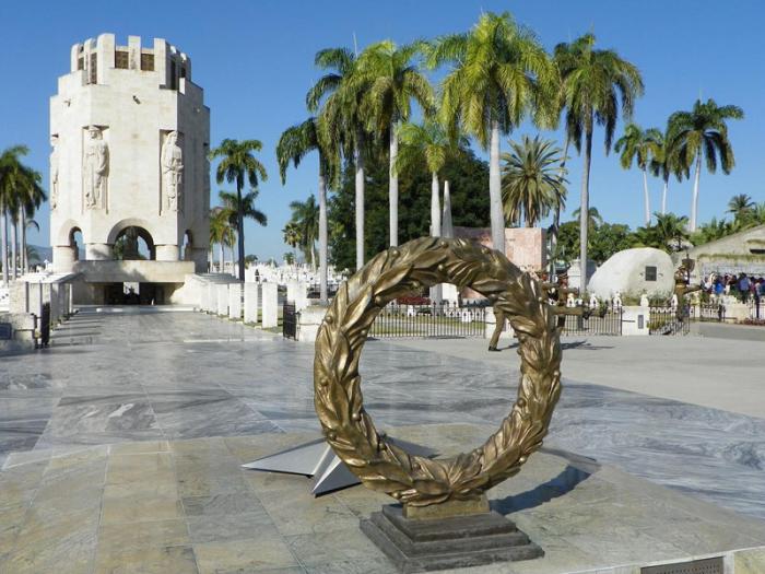 A chama eterna que muito perto do mausoléu que guarda os restos do Mestre e o monumento onde repousam as cinzas do líder da Revolução, arde em memória aos heróis e mártires cujos restos descansam na necrópole de Santiago de Cuba, daqui começará a marcha até a antiga fortaleça.