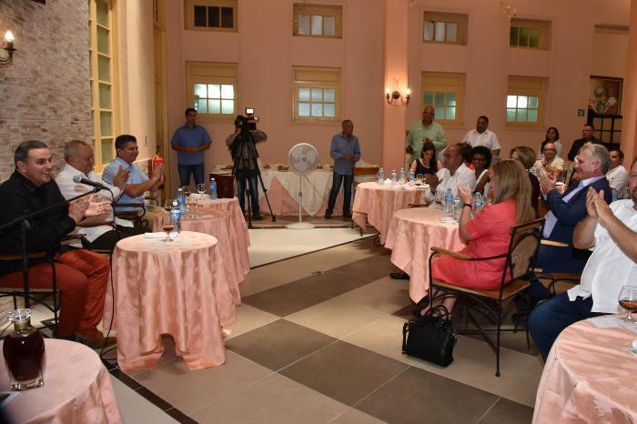 Em outro momento de sua visita, o dignitário, que estava acompanhado das mais altas autoridades do Partido e do Governo no território, Yudi Rodríguez Hernández e Alberto López Díaz, assistiu à apresentação do rum Cuba e Extra Añejo Santa Clara 330, em que recebeu uma explicação exaustiva do máster de rum cubano, César Martí.