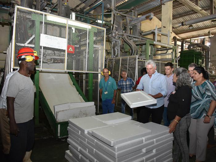 Houve reconhecimento pelo notável crescimento no reaproveitamento de embalagens de vidro, plástico e metal. Díaz-Canel destacou as ações de capacitação e treinamento para aprender sobre as tendências internacionais em embalagens, que incluíram intercâmbios de especialistas estrangeiros com estudantes da faculdade universitária Cujae e do Instituto de Design Industrial.
