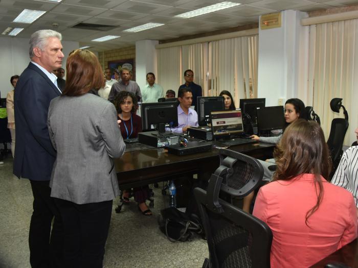 O presidente da República de Cuba, Miguel Díaz-Canel Bermúdez, participou da inauguração do Centro de Produção Telesur em Cuba em 27 de janeiro, à tarde, com sede nos Estúdios de Animação do Instituto Cubano de Cinema (Icaic).