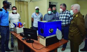 Anteriormente, o presidente cubano tinha visitado, também, a diretoria do Grupo de Eletrônica, na capital, onde foi informado acerca de alguns dos avanços feitos pela indústria nacional para apoiar o confronto à pandemia, entre eles o protótipo de um aparelho de ventilação pulmonar, que logo após a sua validação pode ser utilizado nas salas de cuidados intensivos, bem como batas, máscaras de proteção e um equipamento de desinfecção, a partir do emprego da luz ultravioleta.