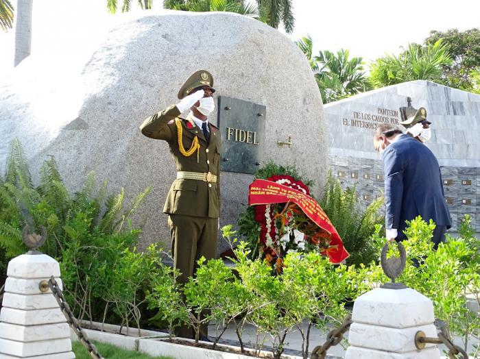 No livro de visitantes da necrópole patrimonial, o presidente reafirmou a amizade que une os povos de Cuba e do Vietnã e ressaltou a admiração especial por Fidel.