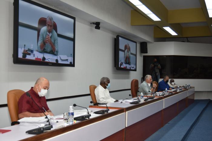 Da mesma forma, foi analisada a situação das contas a receber e vencidas fora do prazo, em contencioso e decisões judiciais ao final de junho; o cumprimento dos planos integrais de enfrentamento às ilegalidades urbanas pelos governos, organismos da Administração Central do Estado e organismos superiores de Gestão Empresarial; e o andamento do Programa de Bolsas de Estudo do Governo em outros países.