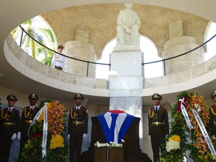 Oferendas florais em nome do general-de-exército Raúl Castro Ruz e do primeiro secretário do Comitê Central do Partido e presidente da República, Miguel Díaz-Canel Bermúdez, foram colocadas nos monumentos funerários de José Martí e Fidel Castro, no cemitério patrimonial Santa Ifigenia, em Santiago de Cuba, por ocasião do 65º aniversário do desembarque do iate Granma e o Dia das Forças Armadas Revolucionárias (FARs).