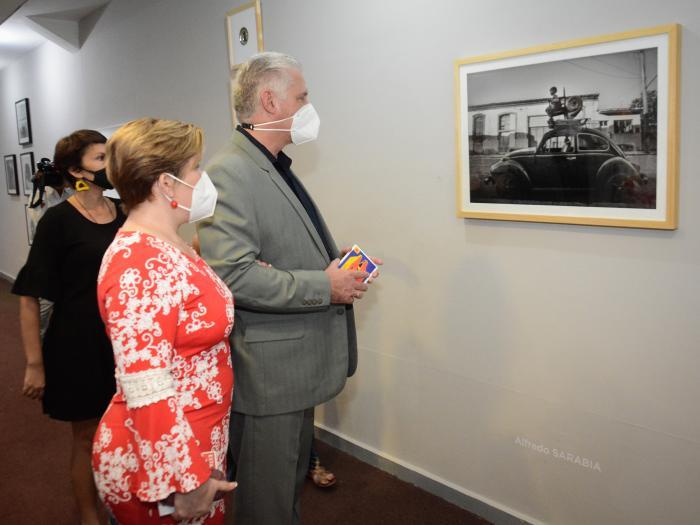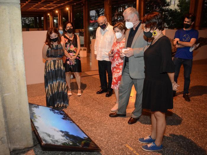 O primeiro secretário do Comitê Central do Partido Comunista e presidente da República, Miguel Díaz-Canel Bermúdez, chegou ao Pavilhão Cuba, sede na capital da Associação Hermanos Saíz (AHS), na terça-feira, 7 de dezembro, enquanto o sol se punha, para apreciar a exposição de artes plásticas «Estado de Espírito», que faz parte da 14ª Bienal de Havana.