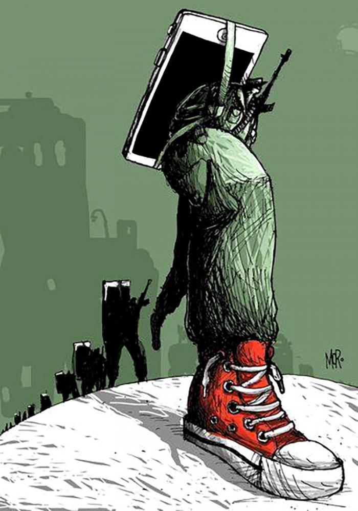 Um exército glamoroso, amigável e banal domina as mentes, os comportamentos e as emoções, desde televisores, computadores e smartphones, artefatos que se fundem rapidamente.