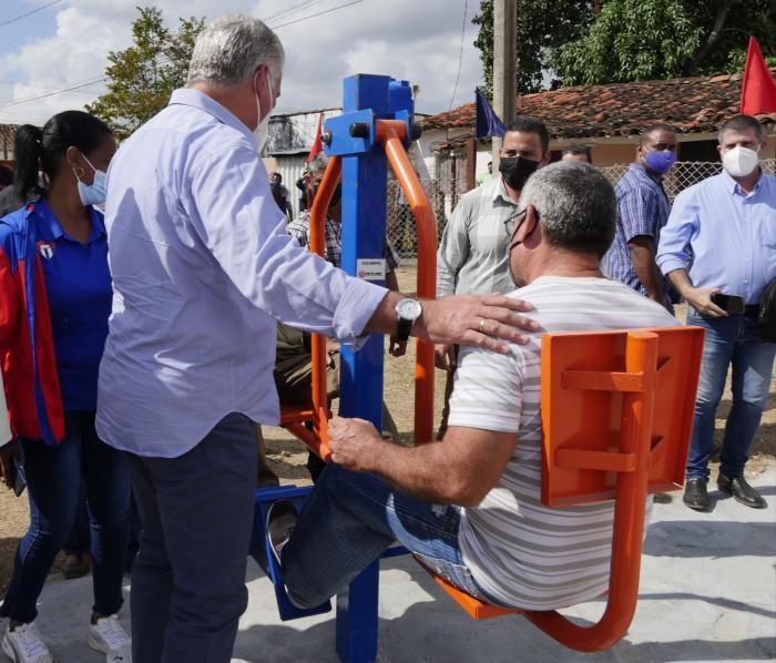 Entre estas questões «antigas» estava a deterioração das instalações esportivas deste assentamento, onde vivem pouco mais de 2.500 pessoas. Não foi por acaso que a Díaz-Canel visitou o novo Complexo Esportivo Recreativo, um local abandonado há anos, e que após o trabalho de vizinhos, empresas e instituições, está recuperando sua vitalidade. Uma nova sala de xadrez, um campo de beisebol, resgatado por todos e um ginásio biossanitário são a prova de quanto se pode fazer com o mínimo de recursos.