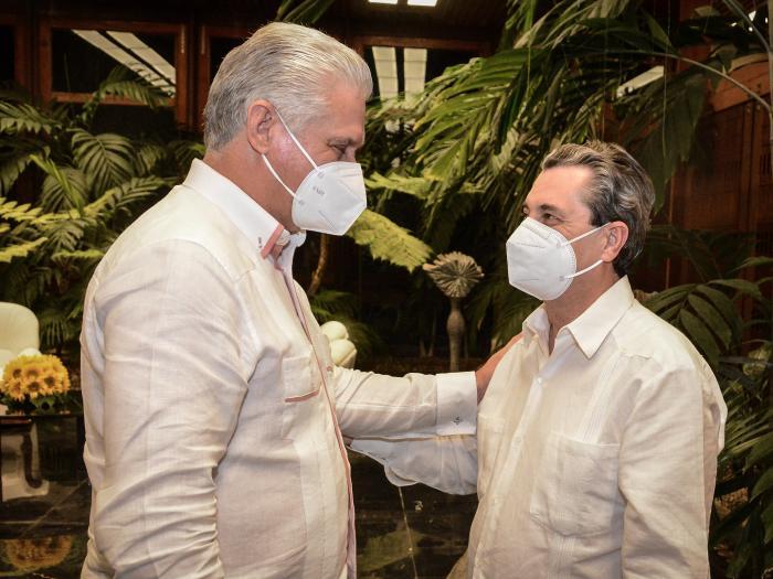 O primeiro secretário do Comitê Central do Partido Comunista de Cuba (PCC) e presidente da República, Miguel Díaz-Canel Bermúdez, recebeu na quarta-feira, 9 de janeiro, no Palácio da Revolução, o presidente do Partido Comunista da Espanha, José Luis Centella Gómez, com quem manteve um diálogo fraterno e amigável.
