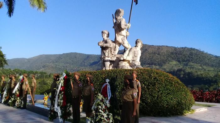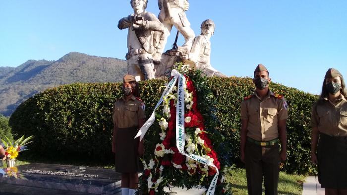 Os membros do Comitê Central e as mais altas autoridades do Partido e do Governo da província, José Ramón Monteagudo Ruiz e Beatriz Johnson Urrutia, respectivamente, assim como a liderança do município, presidiram a cerimônia cuja guarda de honra estava a cargo dos estudantes da Escola Militar Camilo Cienfuegos, em Contramaestre.