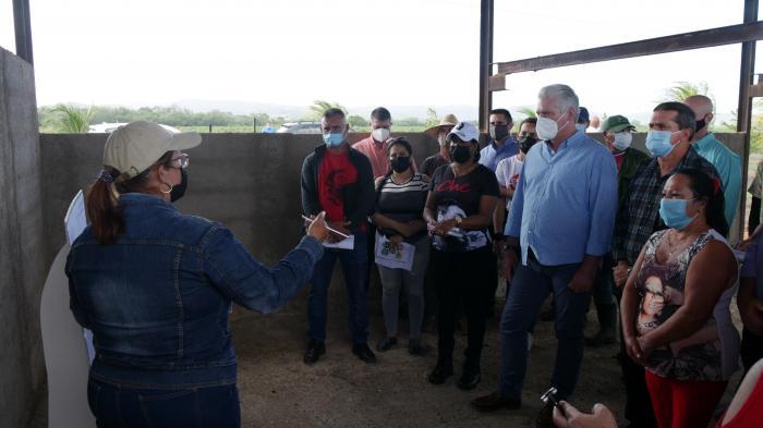 Entre outras coisas, Liudmila Rodriguez, militante de uma célula de base da esfera agrícola, explicou ao chefe de Estado que, além de aumentar o uso de biopreparações, está sendo criado hoje um centro no qual a matéria orgânica tradicional será transformada com o uso da ciência, a fim de se obter mais dela.