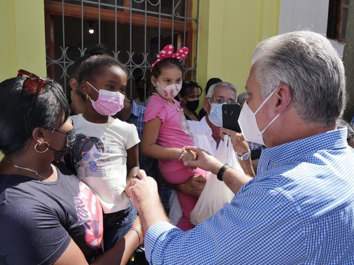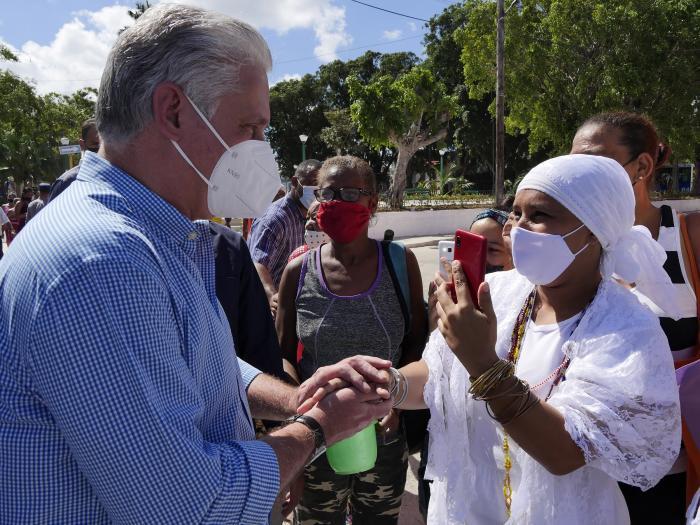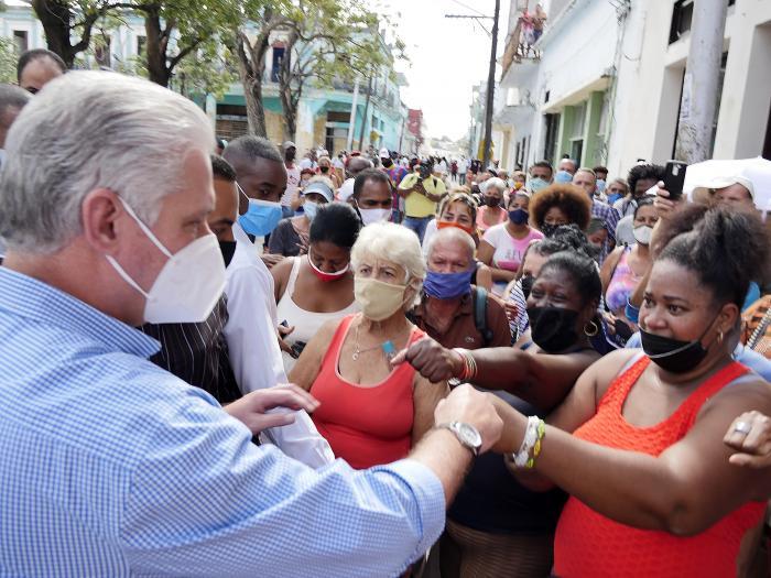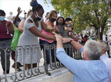 «Díaz-Canel, nós acreditamos em você», eles gritaram de um pavimento. Ao que o presidente respondeu: «E eu acredito em vocês». O presidente continuou seu caminho e parou diante do monumento aos mártires de Regla, e também diante da placa que diz: «Regla, 1836-1996. Aos africanos que em 1836 fundaram a Sociedade Secreta Abacuá nesta cidade».