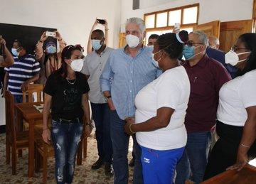 O chefe de Estado lhe perguntou se os habitantes aceitaram com prazer o que foi feito no Emboque; ao que ela respondeu que sim, as pessoas já estão sentadas com prazer no muro de frente para o mar. Díaz-Canel enfatizou então que o essencial é a mudança de atitude, a participação do povo, a preservação do que está sendo feito e o sentido de pertença.