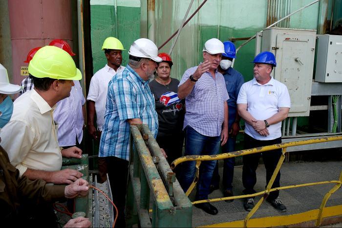 O líder cubano também aprendeu sobre esses esforços diários, que não são menos heróicos por serem anônimos, na usina termoelétrica Máximo Gómez, localizada no município de Mariel, no município de Artemisa.