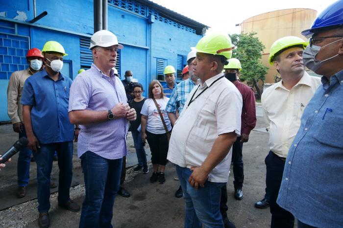 O líder cubano também tomou conhecimento desses esforços diários, que não são menos heróicos por serem anônimos, na central termoelétrica Máximo Gómez, localizada no município de Mariel, no município de Artemisa.