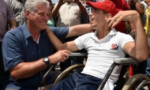 O presidente falou sobre os pensamentos, ações e esforços de homens como Fidel e Raúl, que tiveram uma preocupação especial e uma ocupação de seres humanos com deficiências. Díaz-Canel lembrou os dias de sua infância, quando se encontrou, brincou e fez amigos com deficiências, e compartilhou sua certeza de que essas pessoas «podem fazer qualquer coisa na vida e podem se destacar e participar plenamente».