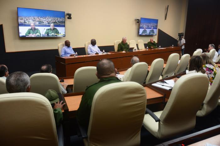 O chefe de Estado expressou a ideia neste tipo de reuniões que estão ocorrendo de forma permanente, para verificar como está indo a recuperação nos territórios mais afetados pelo evento meteorológico. Também estavam presentes Esteban Lazo Hernández, presidente da Assembleia Nacional do Poder Popular; o vice-presidente da República, Salvador Valdés Mesa; assim como o general-de-corpo-de-exército Álvaro López Miera, ministro das Forças Armadas Revolucionárias e Herói da República de Cuba; todos membros do Bureau Político.