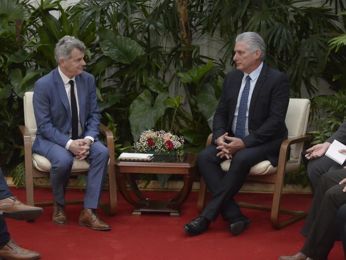 «Somos muito gratos por sua visita a Cuba nestes tempos complexos; somos gratos por sua coragem, porque visitar Cuba nestes tempos é um ato de coragem», disse em 19 de dezembro o primeiro-secretário do Comitê Central do Partido Comunista e presidente da República, Miguel Díaz-Canel Bermúdez, ao dar as boas-vindas a Fabien Roussel, secretário nacional do Partido Comunista Francês.