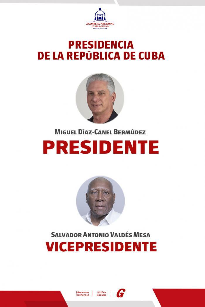 Esteban Lazo Hernández, presidente da ANPP e do Conselho de Estado, após o anúncio dos resultados da votação, declarou a ratificação de Díaz-Canel e Valdés Mesa como presidente e vice-presidente da República, respectivamente.
