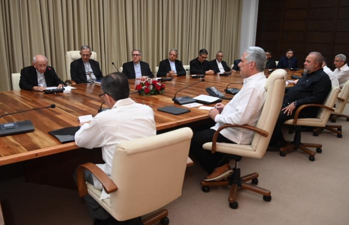 O primeiro-secretário do Comitê Central do Partido Comunista e presidente da República de Cuba, Miguel Díaz-Canel Bermúdez, recebeu na tarde de quarta-feira, 26 de abril, representantes da Conferência dos Bispos Católicos de Cuba.