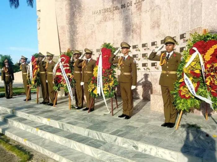 Da mesma forma, flores do líder da Revolução Cubana, general-de-exército Raúl Castro Ruz, e do primeiro-secretário do Comitê Central do Partido Comunista de Cuba e presidente da República, Miguel Díaz-Canel Bermúdez, bem como do membro do Bureau Político e presidente da Assembleia Nacional do Poder Popular, Esteban Lazo Hernández, chegaram ao cemitério patrimonial Santa Ifigênia em homenagem aos mártires da Revolução.