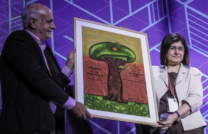 A entrega dos Prêmios El Maestro e Dignidade às redes de televisão Telesur e ao Al Mayadeen, respectivamente, duas grandes plataformas que, em seus esforços para dar voz aos desprotegidos, seguiram o caminho da verdade e da justiça, distinguiu, em 20 e março, o dia de encerramento do 3º Colóquio Internacional Pátria.