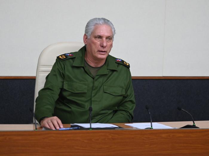 «Acabamos de realizar a reunião de análise que em dois momentos do dia estamos fazendo, como parte do acompanhamento à situação excepcional que vive nosso país, que como explicamos ontem à nossa população, é baseada em dois eventos fundamentais que estão colocando em uma tensão importante a vida das cubanas e os cubanos».