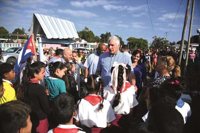 A comunidade de El Valle-Sábalo foi a terceira parada da agenda do chefe de Estado no município de Guane. É um bairro em transformação, com 363 moradores, onde o consultório médico, a escola primária, o círculo social, a área esportiva e a loja de gêneros já foram reabilitados.