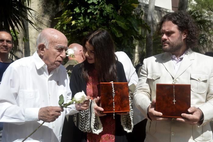 Homenagens florais do líder da Revolução Cubana, general-de-exército Raúl Castro Ruz, e do primeiro-secretário do Comitê Central do Partido e presidente da República, Miguel Díaz-Canel Bermúdez, acompanharam o sincero tributo.