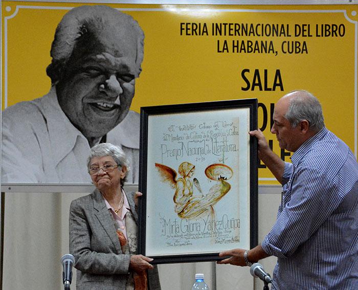 Mirta Yañez: A Feira foi honrada com a entrega do Prêmio Nacional de Literatura 2018, à escritora, filóloga, professora e membro da Academia Cubana da Língua.