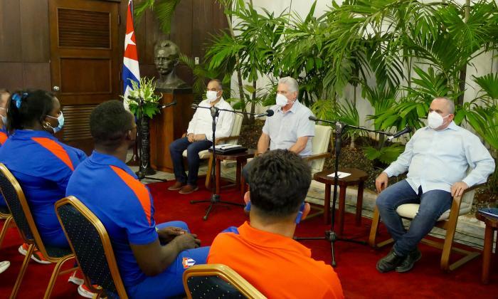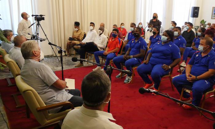 Um «profundo agradecimento pela oportunidade que vocês nos deram de partilhar as ideias que nos transmitiram para o aperfeiçoamento e consolidação do nosso esporte» transmitiu nesta quinta-feira, 7 de outubro, do Palácio da Revolução, o primeiro secretário do Comitê Central do Partido e presidente da República, Miguel Díaz-Canel Bermúdez, a um grupo de interlocutores que falaram com paixão e a mesma sinceridade com que muitos saem em defesa, perante o mundo, da dignidade e da alma de Cuba.