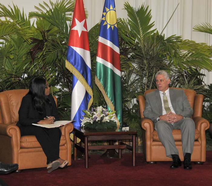 O primeiro vice-presidente dos Conselhos de Estado e de Ministros, Miguel Díaz-Canel Bermúdez, recebeu na quinta-feira, 15 de fevereiro, a primeira-ministra da República da Namíbia, Ex.ma sr.ª Saara Kuugongelwa-Amadhila, quem se encontra de visita oficial em nosso país.