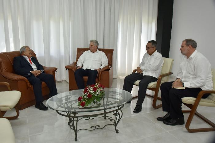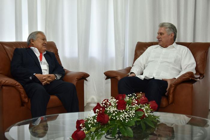 O presidente da República de Cuba, Miguel Díaz-Canel Bermúdez, recebeu no domingo, 3 de novembro, o ex-presidente da República de El Salvador, Salvador Sánchez Cerén, que participa do Encontro Antiimperialista de Solidariedade, pela Democracia e Contra o Neoliberalismo, efetuado de 1 a 3 de novembro em Havana.