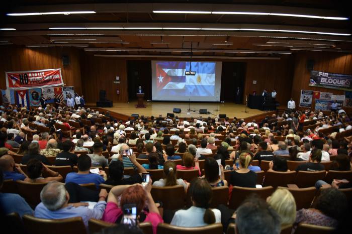 Também gostaríamos de agradecer ao movimento de solidariedade com Cuba na Argentina, às autoridades da Universidade de Buenos Aires e à Faculdade de Ciências Exatas pela oportunidade de ter essa reunião neste ato emocional e também combativo.