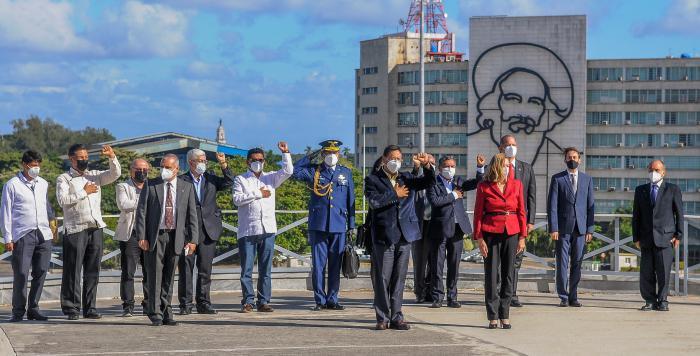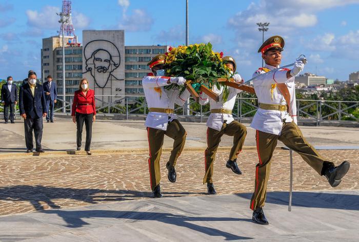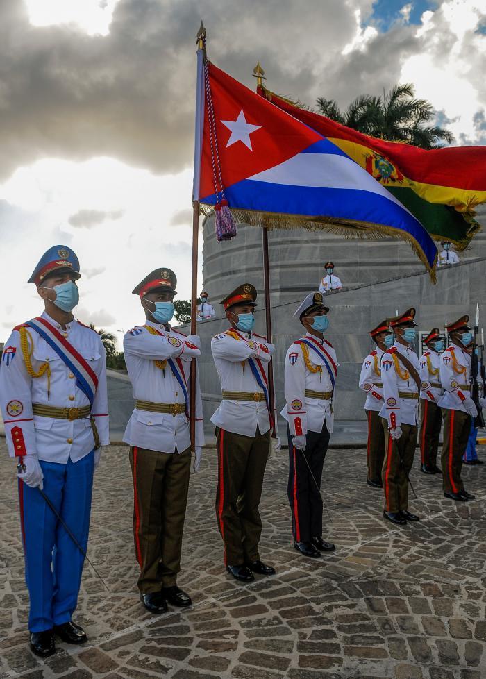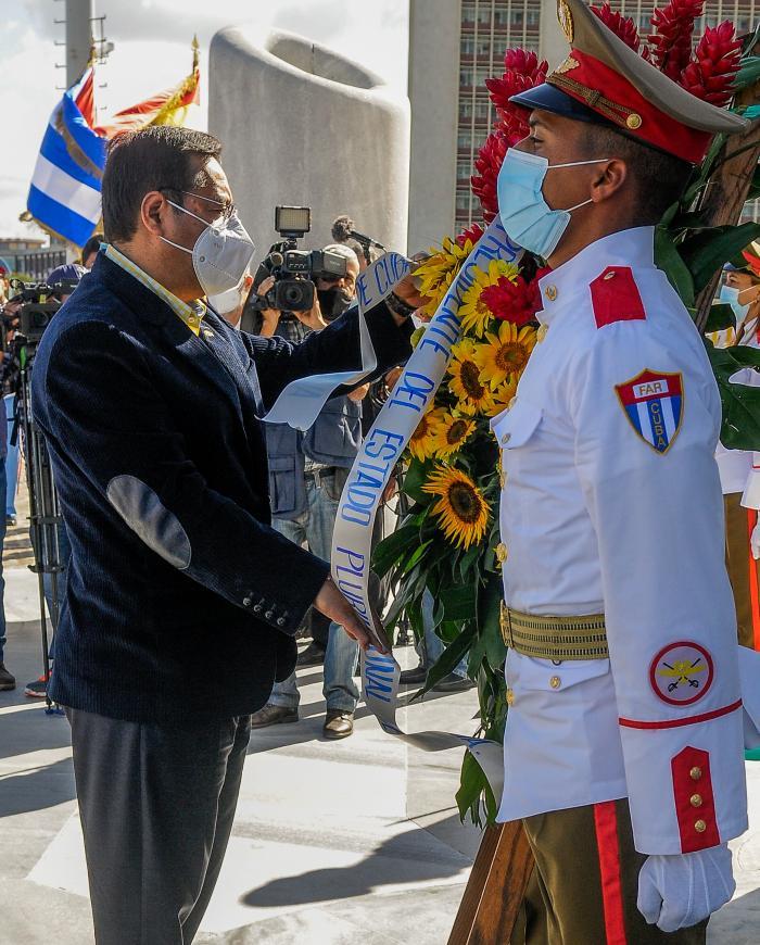 Como parte de sua visita, o presidente boliviano depositou uma oferenda ao Herói Nacional de Cuba, José Martí, acompanhado pela vice-ministra das Relações Exteriores, Josefina Vidal.