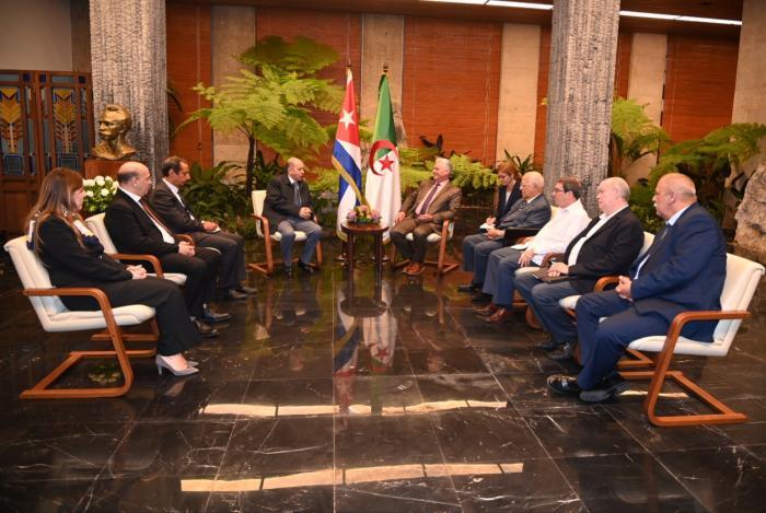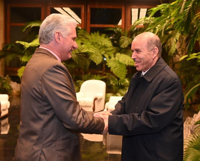 Abdelhak Saihi, ministro da Saúde, População e Reforma Hospitalar da Argélia, após expressar sua gratidão pela acolhida a ele e à delegação que o acompanhava, informou a Díaz-Canel que antes de embarcar no avião em Argel, o presidente Tebboune o chamou para pedir-lhe que lhe transmitisse calorosas saudações.