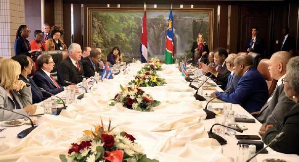 Windhoek, Namíbia.— «Nuestra casa es su casa» (Nossa casa é sua casa). Foi isso que o presidente da Namíbia, Hage Geingob, disse em espanhol ao primeiro-secretário do Comitê Central do Partido Comunista e presidente da República de Cuba no início das conversas oficiais entre as duas delegações na Casa de Estado, em 27 de agosto.