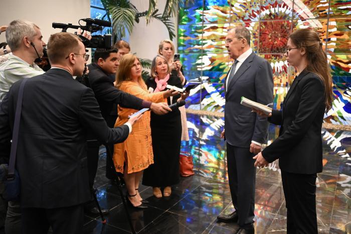 O ministro das Relações Exteriores da Rússia falou à imprensa da Presidência da República de Cuba, e fez referência ao fato de que ele e o presidente falaram sobre as relações que unem os dois Estados, que já havia discutido com seu homólogo, Bruno Rodríguez Parrilla.
