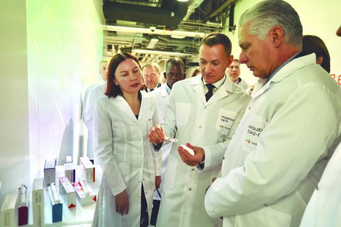 Antes de percorrer o coração da fábrica de medicamentos, o presidente Díaz-Canel Bermúdez comentou sobre a possibilidade de realizar projetos conjuntos, além de afirmar que na Ilha «sua insulina é bem conhecida e que eles, os amigos russos, são hóspedes permanentes na Ilha maior das Antilhas».