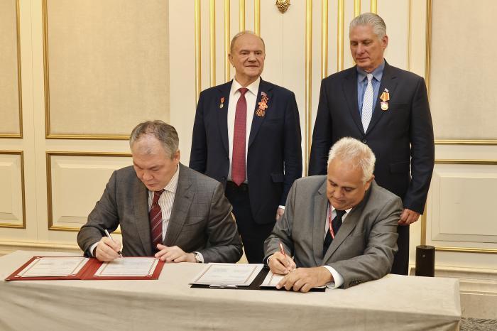 «Querido presidente e querido amigo...», saudou Ziugánov, antes de agradecer ao presidente Díaz-Canel e a toda a sua equipe por sempre apoiar o fortalecimento dos laços entre as duas partes.