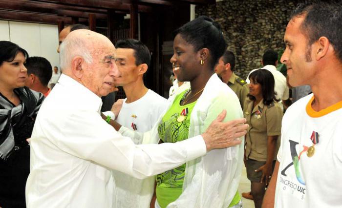 Coube entregar as condecorações a Abelardo Álvarez Gil, membro do secretariado do Comitê Central do Partido; Gerardo Hernández Nordelo, Herói da República de Cuba e Yuniasky Crespo Baquero, primeira-secretária do Comitê Nacional da UJC.