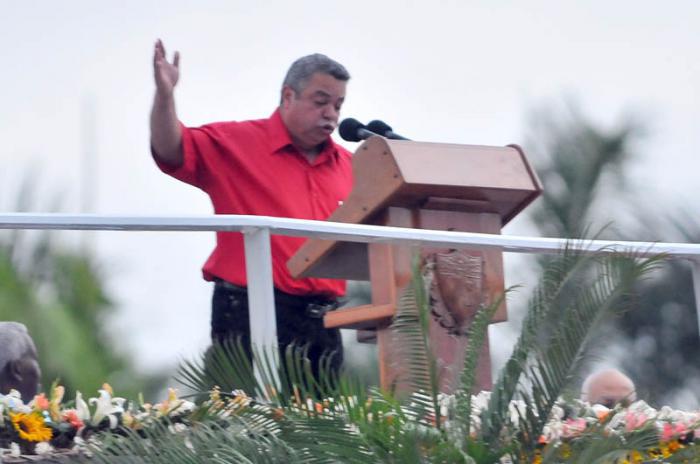 Nós sentimos um infinito orgulho de que um dia como hoje, no qual prestamos homenagem a Lázaro Peña, Jesús Menendez, Aracelio Iglesias e a outros líderes operários, se encontrem entre nós os Cinco Heróis da República de Cuba, Gerardo, Ramón, Antonio, Fernando e René, junto a representantes do pessoal médico que enfrentou a epidemia do Ébola na África, exemplos eloquentes, entre outros, do que representam as convicções, a firmeza, a decisão e a fidelidade à Pátria.