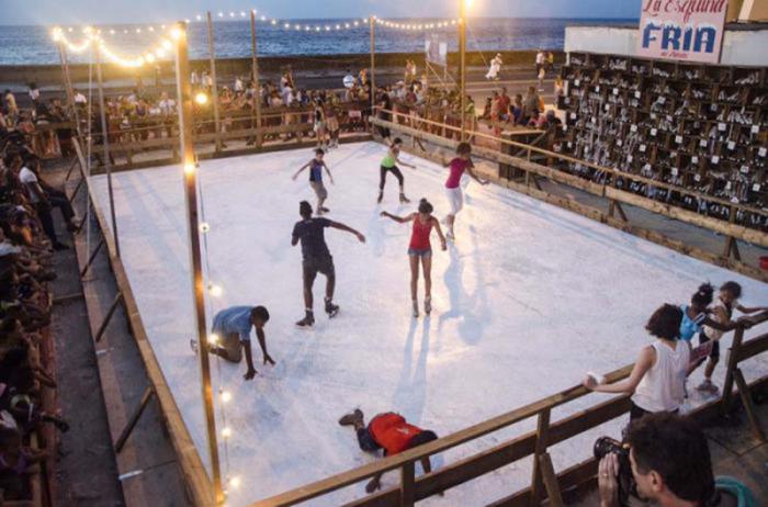 Sem dúvida, um dos projetos mais atraentes é a Pista de gelo, do norte-americano Duke Riley, localizado no cruzamento das ruas Malecón e Belascoain, resultado da investigação feita por este artista de Nova York, sobre a história das pistas de gelo em Cuba, em meados de século passado. A peça, feita com folhas de um material semelhante ao gelo, mas que não é afetado pelo calor, permitirá ao público desfrutar de patinagem, hóquei e jogos organizados para a ocasião.