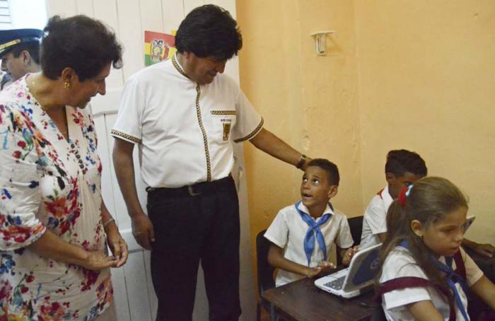Depois do encontro, Morales participou em uma doação de 50 computadores portáteis e material educativo para a escola de ensino primário Estado Plurinacional da Bolívia, situada no município de Centro Habana, na capital. Segundo o chefe de Estado, esta é a primeira instituição educativa no mundo que leva o nome da nação sul-americana.